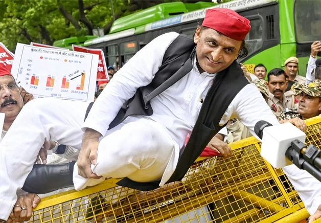 న్యూదిల్లీ : మాది ‘పరిరక్షణ’ పోరు… ఓటు హక్కు కాపాడటమే లక్ష్యం… ఎన్ని కల మోసాలను క్షమించం అంటూ ప్రతిపక్ష ‘ఇండియా’ ఎంపీలు నినదిం చారు. పార్లమెంటు నుంచి ఎన్నికల సంఘం కార్యాలయం ‘నిర్వచన్ భవన్’కు లోక్సభలో ప్రతిపక్ష నాయకుడు రాహుల్ గాంధీ నాయక త్వంలో 300 మంది ప్రతిపక్ష ఎంపీలు కదం తొక్కారు. బీజేపీకి, ఈసీఐకి వ్యతిరేకంగా పెద్దఎత్తున నినాదాలు చేశారు. ‘ఎస్ఐర్: ప్రజాస్వామిక హక్కుల దోపిడీ’ బ్యానర్లు, ‘ఓట్ చోరీ’ అని వేర్వేరు భాషల్లో రాసిన ప్లకార్డులు ప్రదర్శిం చారు. సోమవారం ఉదయం 11.30 గంటలకు పార్లమెంటు మకర ద్వారం నుంచి జాతీయ గీతం పాడుకుంటూ ఎంపీలు మార్చ్ ప్రారంభించారు. పార్లమెంటు ఉభయ సభలు మధ్యాహ్నం 2 గంటల వరకు వాయిదా పడిన తర్వాత ఎంపీలు ప్రదర్శన చేపట్టారు. ‘ఎస్ఐఆర్ రద్దు,’ ‘ఓట్ చోరి ఆపాలి’, ‘ఎస్ఐర్Gఓట్ చోరీR ప్రజాస్వామ్యం ఖూనీ’, ‘ఎస్ఐ ఆర్పై మౌనమెందుకు’, ఎస్ఐఆర్` ప్రజాస్వామ్యంపై దాడి’ వంటి బ్యానర్లు ప్రదర్శించారు. ఈ నినాదాలతో ఉన్న టోపీలు, టీ షర్టులు ధరించారు. ప్రియాంకా గాంధీ వాద్రా, అఖిలేశ్ యాదవ్, కేసీ వేణుగోపాల్, తిరుచి శివ, డెరెక్ ఓ బ్రెయిన్, మనోజ్ కె రaా, మాణిక్యం ఠాకూర్, సుప్రియా సూలే, కనిమొళి తదితరులు పాల్గొన్నారు. ఎంపీల ర్యాలీని అడ్డుకోవడానికి ఆ మార్గాన్ని పోలీసులు దిగ్బంధం చేశారు. బారికేడ్లు ఏర్పాటు చేశారు. దీంతో మహిళా నాయకులు సహా కొందరు ఎంపీలు బారికేడ్లు ఎక్కి నిరసన తెలిపారు. అక్కడే రోడ్డుపై బైఠాయించి బీజేపీకి, ఈసీకి వ్యతిరేకంగా నినాదాలు చేశారు. నిరసన ప్రదర్శనలో ఆప్ ఎంపీలు కూడా పాల్గొన్నారు. నడవలేని పరిస్థితుల్లో ఉన్న శరద్పవార్, మల్లికార్జున ఖడ్గే కూడా ర్యాలీలో భాగస్వాములయ్యారు. అఖిలేశ్ యాదవ్ బారికేడ్లు ఎక్కి దూకారు. ప్రధాని మోదీకి వ్యతిరేకంగా ప్రియాంక గాంధీ నినాదాలిచ్చారు. ఓటు హక్కు, ప్రజాస్వామ్యం పరిరక్షణే లక్ష్యంగా పోరాడుతున్నామని ఎంపీలు తేల్చిచెప్పారు. ప్రతినిధుల భేటీకి కాదు… ఎంపీలంతా కలిసేందుకు అనుమతి కోరినట్లు తెలిపారు. తమను ఈసీ భవన్ వరకు వెళ్లనివ్వకుండా అడ్డుకోవడాన్ని ఆక్షేపించారు. పార్లమెంటు ఎదుటే ప్రజాస్వామ్యం ఖూనీ అవుతోందని ఆగ్రహం వ్యక్తంచేశారు. ప్రశ్నిస్తే నిర్బంధిస్తారా అంటూ నిలదీశారు. బీజేపీ మోసాలన్నింటినీ ‘ఇండియా’ బట్టబయలు చేస్తుందని తేల్చిచెప్పారు. ప్రజాస్వామిక హక్కుల పరిరక్షణకు రాజీలేని పోరాటాలు చేస్తామని సంకల్పించారు. కేవలం 30 మందికే అనుమతి ఉందని పోలీసులు, ఈసీ అధికారులు చెప్పారు. ఇదే క్రమంలో ఎస్పీ అధ్యక్షుడు అఖిలేశ్ యాదవ్, టీఎంసీ ఎంపీ మహువా మొయిత్రా, కాంగ్రెస్ ఎంపీ సంజనా జాతవ్, జ్యోతిమణి సహా కొందరు ఎంపీలు బారికేడ్లు ఎక్కి దూకారు. రోడ్డుపై బైఠాయించి నిరసన కొనసాగించారు. అంతా కలిసే 