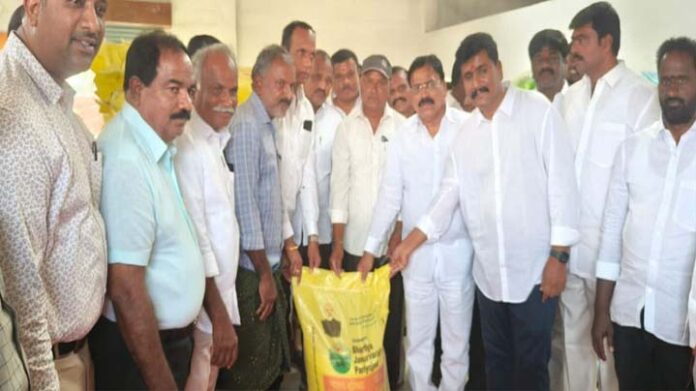 విశాలాంధ్ర-రాప్తాడు (అనంతపురం జిల్లా) : రైతుల సంక్షేమానికి కూటమి ప్రభుత్వం నిరంతరం అండగా ఉంటుందని, సాగులో రైతన్నలకు ఎలాంటి ఇబ్బందులు లేకుండా చూసుకుంటుందని టిడిపి మండల ఇన్చార్జి ధర్మవరపు మురళీ పేర్కొన్నారు. బుక్కచెర్ల సొసైటీ వద్ద రైతులకు ఎరువుల పంపిణీ చేయగా ముఖ్య అతిథులుగా ఏడీసీసీ ఛైర్మన్ కేశవరెడ్డి, డీసీఎంఎస్ ఛైర్మన్ నెట్టెం వెంకటేష్, మార్కెట్ కమిటీ చైర్మన్ సుధాకర్, ఏడిఏ అల్తాఫ్ అలీ ఖాన్, ఏఓ కృష్ణ చైతన్య హాజరయ్యారు. వారు మాట్లాడుతూ రైతుల సమస్యల పరిష్కారానికి టిడిపి ప్రభుత్వం ప్రాధాన్యత ఇస్తుందని భరోసా ఇచ్చారు. ఈ కార్యక్రమంలో మరూరు సొసైటీ చైర్మన్ గోనుగుంట్ల గోపాల్, గంగలకుంట రమణ, వైస్ చైర్మన్ కిష్ట, గోపాల్, వాసురెడ్డి, ఓబులేసు, యర్రప్ప, భోగినేపల్లి రాము తదితరులు పాల్గొన్నారు. రైతులకు సకాలంలో ఎరువులు అందుబాటులోకి తెచ్చిన ఎమ్మెల్యే పరిటాల సునీతకి రైతులు ప్రత్యేక తెలిపారు .