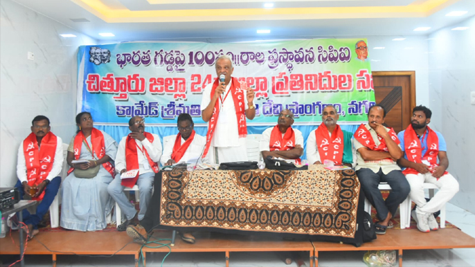 సిపిఐ రాష్ట్ర కార్యదర్శి వర్గ సభ్యులు పి హరినాథ్ రెడ్డి మాట్లాడుతూ ఈ నెల 23 వ తేదీ ఒంగోలు లో జరిగే రాష్ట్ర మహాసభలకు చిత్తూరు జిల్లా నుండి వేలాది మంది తరలి వచ్చి ర్యాలీ బహిరంగ సభ ను జయప్రదం చేయాలని కోరారు. మూడు రోజుల పాటు జరిగే ప్రతినిధుల సభలో రాష్ట్ర రాజకీయ పరిస్థితులను చర్చించి తీర్మానాలు, భవిష్యత్తు కార్యాచరణ చేయనున్నామని తెలియ చేశారు. గతం లో కేంద్రంలో రాష్ట్రం లో అధికారం లో ఉన్న బిజెపి, వైసిపి పై పోరాటం సాగించామని చెప్పారు. నేడు అధికారం లోకి వచ్చిన ప్రభుత్వాలు గత ప్రభుత్వానికి ఏమి తేడా లేకుండా పరిపాలన సాగిస్తున్నారు అన్నారు. ఇచ్చిన హామీలు అమలు చేయకుండా ఖజానా ఖాళీ అని చేతులు ఎత్తివేయడం చంద్ర బాబు దివాలకోరూ రాజకీయాలు నిదర్శనం అన్నారు. పి 4 పథకం తో పేదరికాన్ని పారదోలే ఆలోచన కంటే వారికి ఉపాధి అవకాశాలు కల్పించి వారికి శాశ్వత పరిష్కారం చూపాలి అన్నారు. సమస్యలపై పోరాటం చేస్తున్న వారిని పిలిచి మాట్లాడే ప్రయత్నం చేయకపోగా అసెంబ్లీ లో కనీస ప్రస్తానం లేదని విమర్శించారు. ఈలాంటి విధానాల పై పోరాటాల రూపకల్పన చేయాల్సిన అవసరం ఎంతైనా ఉందని చెప్పారు.రాష్ట్ర కార్యవర్గ సభ్యులు ఎ రామానాయుడు, శివారెడ్డి మాట్లాడుతూ పార్టీ వంద సంవత్సరాలు పూర్తి చేసుకుంటున్న సందర్భంగా పార్టీని గ్రామీణ స్థాయి నుండి బలోపేతం చేసేందుకు కృషి చేయాలని కోరారు. చిత్తూరు జిల్లాలో నెలకొన్న సమస్యల పరిష్కారానికి సమర శీల పోరాటాలకు సిద్ధం కావాలని పిలుపునిచ్చారు. జెండా ఆవిష్కరించిన వేలన్ మాట్లాడుతూ గత నాలుగు దశాబ్దాలుగా పార్టీని బలోపేతం చేసేందుకు కృషి చేశాము అన్నారు. నగరి నియోజక వర్గంలో వివిధ ఫ్యాక్టరీ లలో కార్మిక సంఘాలు ఏర్పాటు చేసి వారి సమస్యల పై పోరాటం సాగించామని చెప్పారు. జెండా ఆవిష్కరణ అవకాశం కల్పించినందుకు కృతజ్ఞతలు తెలిపారు. సిపిఐ జిల్లా కార్యదర్శి ఎస్ నాగరాజన్ కార్యదర్శి నివేదిక ప్రవేశ పెట్టారు. ఆంధ్రప్రదేశ్ ప్రజానాట్య మండలి రాష్ట్ర ప్రధాన కార్యదర్శి చిన్నం పెంచలయ్య, రాష్ట్ర ఉపాధ్యక్షులు ఎస్ గుర్రప్ప, హరిబాబు, డప్పుసూరి ఆలపించిన విప్లవ గేయాలు ప్రతినిధులను ఉత్సాహపరిచాయి.