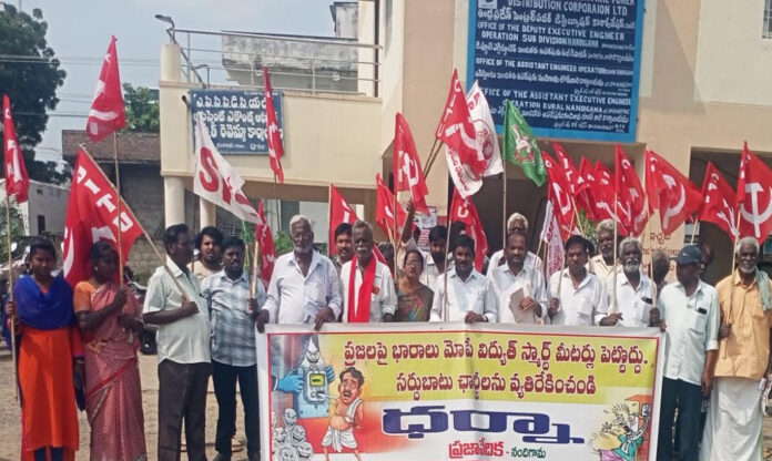 స్మార్ట్ మీటర్ల ప్రక్రియ నిలుపుదల చేయాలని సిపిఐ,సిపిఎం ఆధ్వర్యంలో ధర్నా