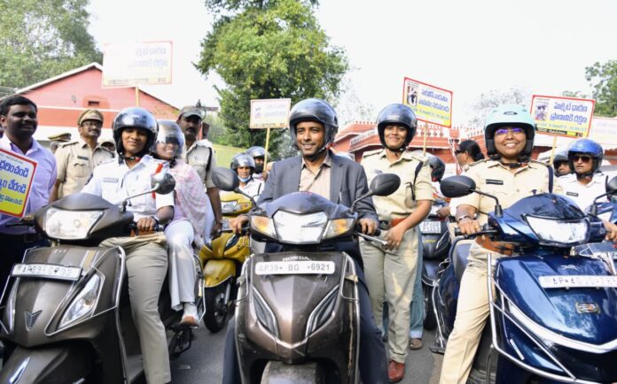 విశాలాంధ్రవిజయవాడ:ద్విచక్ర వాహన చోదకుల ప్రాణాలకు హెల్మెట్ రక్షణ కవచం లాంటిదని హెల్మెట్ ధరించి వాహనం నడిపి సురక్షితంగా గమ్యానికి చేరుకోవాలని జిల్లా కలెక్టర్ డా. జి. లక్ష్మీశ సూచించారు.జాతీయ రహదారి భద్రత మాసోత్సవాల సందర్భంగా జిల్లా రవాణా, పోలీసు శాఖల అధ్వర్యంలో శుక్రవారం నిర్వహించిన మహిళల బైక్ ర్యాలీ కలెక్టరేట్ నుండి ఆయన ప్రారంభించారు. ఈ సందర్భంగా కలెక్టర్ మాట్లాడుతూ ప్రజలలో హెల్మెట్ ధరించి వాహనాలను నడపడం పై పూర్తి అవగాహన కల్పించేందుకు బైక్ ర్యాలీ ని నిర్వహిస్తున్నట్లు తెలిపారు. మారుతున్న కాలానికి అనుగుణంగా మహిళలలో చైతన్యం పెరిగి ఉద్యోగ వ్యాపార రంగాలలో ఎంతగానో రాణిస్తున్నారన్నారు. దైనందిక జీవితంలో మహిళలు అవసరాలకు అనుగుణంగా ద్విచక్ర వాహనాలను ఉపయోగిస్తున్నారన్నారు. ద్విచక్ర వాహనాలు నడిపే మహిళల సంఖ్య నానాటికి పెరుగుతున్న తరుణంలో హెల్మెట్ ధరించడంపై మహిళలకు అవగాహన కల్పించి చైతన్య వంతులను చేయడం ఎంతో అవసరమన్నారు. జరుగుతున్న రోడ్డు ప్రమాదాలలో ఎక్కువ శాతం వాహనాలు నిర్లక్ష్యంగా నడవడం, ట్రాఫిక్ నిబంధనలను అతిక్రమించడం వలన జరుగుతున్నట్లు నివేదికలు తెలియజేస్తున్నాయన్నారు. డీసీపీ ఎస్ కె హసీనా బేగం మాట్లాడుతూ కార్లు ద్విచక్ర వాహనాలు నడిపే వాహన చోదకులు సీటు బెల్టు హెల్మెట్ తప్పక ధరించి వాహనాలను నడపాలన్నారు. ట్రాఫిక్ నిబంధనలపై ప్రజలలో అవగాహన కల్పించేందుకు పలు కార్యక్రమాలు నిర్వహిస్తున్నామన్నారు.
