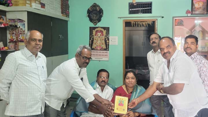 విశాలాంధ్ర ధర్మవరం:: నేత్రదానం సహకరించిన కుటుంబ సభ్యులకు వారి ఇంటికి వెళ్లి, విశ్వదీప సేవా సంఘం వారు శాలువా, జ్ఞాపికతో ఘనంగా సత్కరించారు. అనంతరం విశ్వదీప సేవా సంఘం వారు మాట్లాడుతూ నేత్రదానం పై అవగాహనలో భాగంగా నేత్రదానం చేయించుటలో సహకరించిన నేత్రదాతల కుటుంబ సభ్యులను సన్మానం మాకెంతో సంతోషాన్ని ఇచ్చిందని తెలిపారు. ఈ కార్యక్రమంలో ఆఫ్టలమిక్ అధికారి ఉరుకుందప్ప, ఇంజనీర్ శ్రీనివాసరెడ్డి ,సేవా సంఘం ఫౌండర్ కోళ్ళమొరం చంద్రశేఖర్ రెడ్డి , ఎం అధ్యక్షులు గాజుల సురేష్ కార్యదర్శి జుజార్ రఘు సభ్యులు ఖమ్మం మాధవ, నారాయణస్వామి, తిప్పయ్య కేశవరెడ్డి,వెంకటరాముడు సుబ్రహ్మణ్యం,వెంకటేష్, వెంకటనారాయణ,నేత్రదాతల కుటుంబ సభ్యులు పాల్గొన్నారు.