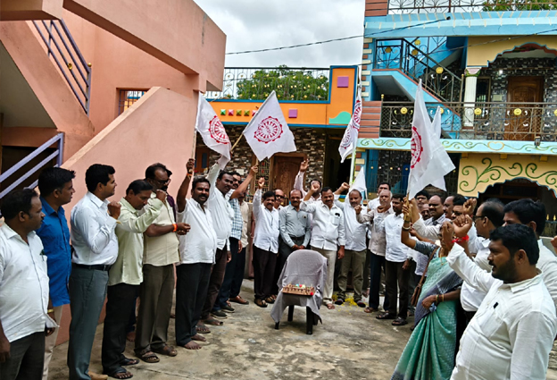 విశాలాంధ్ర పుట్టపర్తి: – రాష్ట్ర ప్రభుత్వ ఉద్యోగులకు సమస్యలు తలెత్తితే యూనియన్ దృష్టికి తీసుకురావాలని జిల్లా అధ్యక్ష కార్యదర్శులు భాస్కర్ రెడ్డి, పాలెల రామాంజనేయులు యాదవ్ లు పేర్కొన్నారు. శనివారం ఆంధ్రప్రదేశ్ ప్రభుత్వ ఉద్యోగుల సంఘం కు 2019 ఆగస్టు 16వ తేదీన గుర్తింపు వచ్చిన సందర్భంగా రాష్ట్ర అధ్యక్షులు కేఆర్ సూర్యనారాయణ , ప్రధాన కార్యదర్శి రమేష్ కుమార్ ఆదేశాలతో జిల్లా కేంద్రమైన పుట్టపర్తి జిల్లా కార్యాలయం లో జెండా ఎగరవేసి కేక్ కట్ చేసి సంబరాలు జరుపుకున్నారు.ఈ సందర్భంగా జిల్లా అధ్యక్షులు భాస్కర్ రెడ్డి మాట్లాడుతూ నేటికీ ఆంధ్రప్రదేశ్ ప్రభుత్వ ఉద్యోగుల సంఘానికి గుర్తింపు వచ్చి ఆరు సంవత్సరాల పూర్తయ్యిందని ఈ ఆరు సంవత్సరాల కాలంలో రాష్ట్రవ్యాప్తంగా ఉద్యోగుల సమస్యల పరిష్కారానికి యూనియన్ తరపున అనేక ఉద్యమాలు చేసి విజయం సాధించడం జరిగిందన్నారు.నాలుగో తరగతి ఉద్యోగి నుండి గ్రూప్ వన్ అధికారుల వరకు అన్ని కేడర్ల ఉద్యోగులు ఆంధ్రప్రదేశ్ ప్రభుత్వ ఉద్యోగుల సంఘం లో కొనసాగుతున్నారన్నారు .ఉద్యోగులకు ఎలాంటి సమస్యలు తలెత్తిన యూనియన్ దృష్టికి తీసుకువచ్చిన వెంటనే వాటిని పరిష్కరిస్తున్నామని జిల్లా అధ్యక్షులు హామీ ఇచ్చారు.యూనియన్ గుర్తింపు దినోత్సవాన్ని పురస్కరించుకొని “రండి టీ తాగుతూ మాట్లాడుకుందాం” కార్యక్రమాన్ని విజయవంతం చేయడం యొక్క అవశ్యకతను కార్యదర్శి రామాంజనేయులు తెలియజేశారు.ఈ కార్యక్రమంలో జిల్లా ఉపాధ్యక్షులు గోవిందప్ప, రవి , ముసలి రెడ్డి,సహా కార్యదర్శి కిషోర్, వివిధ తాలూకాల అధ్యక్ష కార్యదర్శులు మరియు కార్యవర్గ సభ్యులు పాల్గొన్నారు.