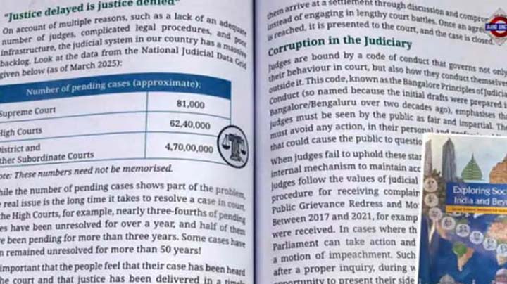 దేశంలో పాఠ్యపుస్తకాలను రూపొందించే జాతీయ విద్యా పరిశోధన, శిక్షణ మండలి (ఎన్సీఈఆర్టీ) కీలక నిర్ణయం తీసుకుంది. 8వ తరగతి సోషల్ సైన్స్ పాఠ్యపుస్తకంలో న్యాయవ్యవస్థకు సంబంధించి వివాదాస్పద అంశాలు ఉండటంతో ఆ పుస్తకాన్ని ఉపసంహరించుకుంటున్నట్లు ప్రకటించింది. ఈ పొరపాటుపై బహిరంగంగా క్షమాపణలు కూడా కోరింది. 8వ తరగతి సోషల్ సైన్స్ పుస్తకంలోని నాలుగో అధ్యాయంలో భారత న్యాయవ్యవస్థ ఎదుర్కొంటున్న సవాళ్లపై ఓ పాఠ్యాంశం ఉంది. న్యాయమూర్తుల కొరత, కేసుల విచారణలో జాప్యం, మౌలిక సదుపాయాల లేమి వంటి అంశాలను ఇందులో వివరించారు. అయితే, ఈ విశ్లేషణలో భాగంగా న్యాయవ్యవస్థలో అవినీతి అనే ప్రస్తావన ఉండటం తీవ్ర వివాదానికి దారితీసింది. ఇది న్యాయవ్యవస్థ ప్రతిష్ఠకు భంగం కలిగించేలా ఉందని విమర్శలు వెల్లువెత్తాయి. విమర్శల నేపథ్యంలో తక్షణమే స్పందించిన ఎన్సీఈఆర్టీ ఇది ఉద్దేశపూర్వకంగా జరిగింది కాదని స్పష్టం చేసింది. కొన్ని వాక్యాలు తప్పుగా అర్థం వచ్చేలా ఉన్నాయని, పొరపాటు జరిగినందుకు విచారం వ్యక్తం చేస్తున్నామని పేర్కొంది. వెంటనే మార్కెట్ నుంచి ఆ పుస్తకాలను వెనక్కి తీసుకుంటున్నట్లు ప్రకటించింది. త్వరలోనే సవరించిన పాఠ్యాంశాలతో కొత్త పుస్తకాలను ముద్రిస్తామని తెలిపింది. సవరించిన పాఠ్యపుస్తకాల డిజిటల్ కాపీలను త్వరలో తమ వెబ్సైట్లో అందుబాటులో ఉంచుతామని ఎన్సీఈఆర్టీ వెల్లడించింది.