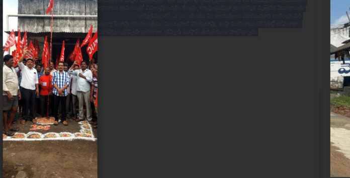 విశాలాంధ్ర – నిడదవోలు : ఏఐ.టి.యు.సి 106 వ ఆవిర్భావ దినోత్సవాన్ని నిడదవోలులో ఎ.ఐ.టి.యు.సి. ఏరియా సమితి ఆధ్వర్యంలో ఘనంగా నిర్వహించారు . ఈ సందర్భముగా పలు కార్మిక సంస్థల వద్ద ఎ.ఐ.టియుసి పతకాల్ని ఆవిష్కరించిన ఎ.ఐ.టి.యు.సి నాయకులు కార్యకర్తలు నిడదవోలు మెయిన్ రోడ్ లో పొట్టిశ్రీరాములు విగ్రహము వద్ద శ్రీ వెంకటేశ్వరా జట్ల సంఘం ఆధ్వర్యంలో ఎ. ఐ.టియుసి పతకాన్నిఎ.ఐ.టి.యు.సి. నాయకులు రేఖా భాస్కరరావు ఆవిష్కరించారు. ఈ సందర్భముగా రేఖా భాస్కరరావు మాట్లాడుతూ 1920 అక్టోబరు 31 వ తేదీన ఏర్పడిన ఎ.ఐ.టి.యు.సి. దేశం లోనే ప్రప్రథమ కార్మికసంస్థ అని స్వాతంత్ర్యపోరాటములో ఎ.ఐ.టియుసి కీలక పాత్ర పోషించిందని. శ్రామిక హక్కుల పరిరక్షణలో ఎ.ఐ.టి.యు.సి. పాత్ర మరువ లేనిదన్నారు .కార్మిక చట్టాల రూప కల్పనలో , కార్మిక హక్కుల పరిరక్షణలో ఎ.ఐ.టి.యు.సి. పాత్ర చిరస్మరణీయమని , ప్రస్తుతం కేంద్రంలో మతోన్మాద బి.జె.పి. ప్రభుత్వం కార్మిక హక్కుల పై దాడి చేస్తుందని, కార్పోరేట్లు కు అనుకూలంగా 44 కార్మిక చట్టాలను 4, కోడ్ లు గా మార్చిందని, యిప్పటికే 29 కార్మిక చట్టాలు రద్దుచేసిందని , విశాఖ స్టీల్ సహా దేశంలో ప్రభుత్వ రంగ సంస్థల ప్రైవేటీకరణకు పూనుకున్నదని , దేశంలో నిరుద్యోగం పెరిగిపోయిందని, ఆదివాసీలు,గిరిజనులు, దళితులు,మహిళలు , మైనారీటిల పై దాడులు పెరిగాయని, కేంద్రం లో బిజెపి ప్రభుత్వం రాజ్యాంగ వ్యవస్థలను నిర్వీర్యం చేసిందని , దేశ సంపదను కార్పొరేట్లకు దోచిపెడుతున్నదని, రాష్ట్రంలో కూటమి ప్రభుత్వం నరేంద్రమోదీ కి అనుకూలంగా కార్మిక వ్యతిరేక విధానాలు అవలంభిస్తున్నదని, కార్పొరేట్లును ప్రసన్నం చేసుకోవటానికి 12 గంటల పనిదినానికి చట్టం చేసిందని , విశాఖ స్టీల్ ప్లాంటు ప్రైవేటీకరణ ను నిలుపుదల చేయడంలో ఘోరంగా విఫలమయిందని, ప్రత్యేక హోదా మాటే మార్చి పోయిందని , ఎన్నికల వాగ్దానాలు అమలులో విఫలమైందని, కేంద్ర , రాష్ట్ర ప్రభుత్వాల కార్మిక వ్యతిరేక విధానాలకు భవిష్యత్ పోరాట కార్యక్రమానికి ఏఐటీయూసీ శ్రేణులు సిద్ధం కావాలని పిలుపిచ్చారు -కార్యక్రమంలో ఎ. ఐ.. టి.యు.సి, నాయకులు మాముడూరి నాగేంద్ర వర ప్రసాద్ , మెయిలి శ్రీను, రామిశెట్టి సత్తిబాబు, బీజా అప్పారావు,కోసూరి శ్రీను,, మామిడిసన్యా సిరావు, రొంగల శ్రీను, పెంటపాటి వెంకట్రావు, బద్ది సూరిబాబు,చోడిశెట్టి లోవరాజు , జల్లా వెంకటేశులు, నంద్యాల వీర్రాజు పొలిమాటి తాతబ్బాయి,, గాడిరవి, ఖండవల్లి మాణిక్యం,క్రొవ్విడి నాగరాజు, క్రివ్విడి మస్తాన్ తదితరులు పాల్గొన్నారు.
