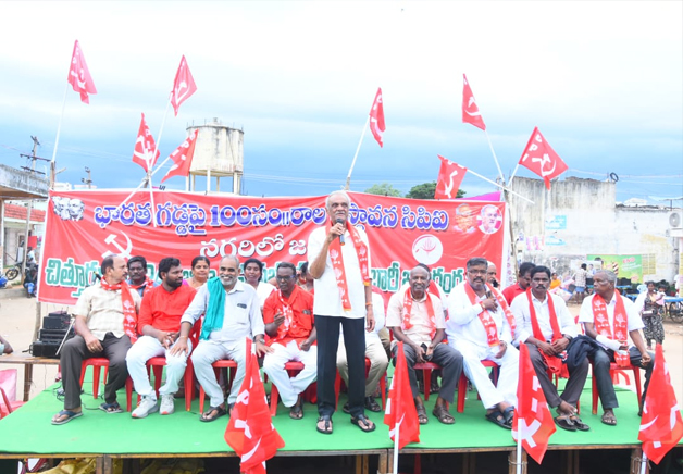 నేడు దేశం లో రాష్ట్రం లో జరుగుతున్న రాజకీయ పరిస్థితులలో అణగారిన వర్గాలు రాజ్యాధికారం లోకి రావాలని కోరారు. పల్లకీలు మోసేదానికి కార్యకర్తలు గా మిగిలి పోకుండా చట్ట సభలోకి వెళ్లేందుకు ప్రయత్నం చేయాలి అని పిలుపునిచ్చారు. చిత్తూరు జిల్లా సిపిఐ 24వ మహాసభలు నగరిలో ప్రారంభం అయ్యాయి. ఓం శక్తి గుడి నుండి బస్టాండ్ వరకు మహా ప్రదర్శన నిర్వహించారు. ఈ ప్రదర్శనలో రెడ్ షర్ట్ వాలంటీర్లు కవాతు, కళాకారుల ఆట పాట, కోలాట బృందాలు , ఇతర నృత్యరూపాలు పుర ప్రజలను విశేషంగా ఆకట్టుకున్నాయి. కేంద్ర రాష్ట్ర ప్రభుత్వాలు అనుసరిస్తున్న ప్రజా వ్యతిరేక విధానాలపై ప్రదర్శనలో కార్యకర్తలు చేసిన నినాదాలు హొరెత్తించాయి. వంద సంవత్సరాల సిపిఐ చరిత్ర పోరాటాల ఫలితాలతో రూపొందించిన బ్యానర్లు, కటౌట్ లు ప్రజలను ఆలోచింపజేశాయి. అనంతరం బస్టాండ్ వద్ద సిపిఐ జిల్లా కార్యదర్శి ఎస్ నాగరాజన్ అధ్యక్షతన బహిరంగ సభ జరిగింది. ఈ సభకు ముఖ్యఅతిథిగా హాజరైన డాక్టర్ కే నారాయణ మాట్లాడుతూ పరిశ్రమలు బాగా ఉండాలి అందులో పని చేస్తున్న కార్మికులు కూడా బాగుండాలి అని పోరాటం చేసిన పార్టీ కమ్యూనిస్టు పార్టీ అన్నారు. సంపన్న వర్గాలు మరింత సంపన్నులు గా మారుతున్నారు పేదలు మరింత పేదలుగా మారుతున్నారు అన్నారు. గత ప్రభుత్వం లో కంటే నేడు కూటమి ప్రభుత్వం లో అవినీతి విపరీతంగా పెరిగింది అన్నారు. ఇసుక కొల్ల గొడుతున్నారు అన్నారు. నగరి ముఖ ద్వారంగా మైన్స్ తరలిస్తున్నారు అని అన్నారు. వీటిని కమ్యూనిస్టు పార్టీ ఆధ్వర్యం లో అడ్డుకుంటాం అన్నారు. స్మార్ట్ మీటర్ల పేరుతో అదానీ కంపెనీ కి దోచి పెట్టీ పేదల పై పెను భారం మోపుతున్నారు అన్నారు. స్మార్ట్ మీటర్ల ను మీటర్లు పగుల గొట్టమని పిలుపునిచ్చారు.నాడు లోకేష్ స్మార్ట్ మీటర్లు పగుల గొట్టాలనీ చెప్పిన లోకేష్ నేడు అదే మీటర్లను బిగించాలి అని చెప్పడం దారుణం అన్నారు. రెండు లక్షల కోట్ల రూపాయలు రెండు సంవత్సరాల్లో అదాని కంపెనీ లాభం పొందింది అన్నారు. కూటమి ప్రభుత్వం అధికారం లోకి వచ్చాక మహిళలు, దళితుల పై దాడులు పెరిగాయి అన్నారు. ఈ నేపధ్యం లో కమ్యూనిస్టు పార్టీ నీ గ్రామీణ స్థాయి నుండి బలోపేతం చేయాలి అని పిలుపునిచ్చారు.