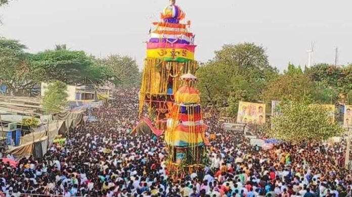 విశాలాంధ్ర, ఉరవకొండ (అనంతపురం జిల్లా) : అనంతపురం జిల్లా ఉరవకొండలోని గవిమఠం శ్రీచంద్రమౌళీశ్వర స్వామి వారి రథోత్సవం గురువారం సాయంత్రం వేలాదిమంది భక్తుల కోలాహలాల మధ్య నేత్రపర్వంగా, వైభవంగా జరిగింది. రథోత్సవానికి భారీగా భక్తులు తరలిరావడంతో గవిమఠ ప్రాంగణం కిటకిటలాడింది. ప్రత్యేక పూజలు అనంతరం రథాన్ని లాగారు. రథోత్సవం సందర్భంగా గవిమఠం పీఠాధిపతి శ్రీచెన్నబసవ రాజేంద్ర స్వామి, ఉత్తరాధికారి శ్రీకరిబసవ రాజేంద్ర స్వామి, ఆదోని చౌకి మఠం మఠాధిపతి శ్రీకల్యాణి స్వామి, గవిమఠం సహాయ కమిషనర్ గంజి మల్లికార్జున ప్రసాద్ ఆధ్వర్యంలో అర్చకులు తెల్లవారుజామునుండి శ్రీచంద్రమౌళీశ్వర స్వామికి, గవిసిద్దేశ్వరుడికి ప్రత్యేక పూజలు జరిపారు. సాయంత్రం ఉత్సవ విగ్రహాలను ఊరేగింపుగా తీసుకెళ్లి రథంపై కొలువు దిర్చారు. శ్రాస్త్రోక్తంగా పూజలు జరిపిన అనంతరం అశేష భక్త జనవాహిని చేసిన శివ నమస్మరణల మధ్య చంద్రమౌళీశ్వర స్వామి వారి మహారథోత్సవం వైభవంగా జరిగింది. భక్తులు పూలు, పండ్లు రథంపై విసిరి తమ మొక్కులను తీర్చుకుని భక్తిని చాటుకున్నారు.స్వామి వారి మూల విరాట్ ను దర్శించుకునేందుకు భక్తులు బారులు తీరారు. అనంతపురం జిల్లా వాసులే కాకుండా ఏపీ, కర్ణాటక రాష్ట్రాల నుండి వేలాది మంది భక్తులు రథోత్సవ కార్యక్రమానికి హాజరయ్యారు. ఉరవకొండ మేజర్ గ్రామపంచాయతీ అధికారులు పాలకవర్గ సభ్యులు రథోత్సవాన్ని అలంకరించడానికి పూల హారాలను ఊరేగింపుగా తీసుకెళ్లారు. ఏలాంటి అవాంఛనీయ సంఘటనలు జరగకుండా పోలీస్ సిబ్బంది గట్టి బందోబస్తు ఏర్పాటు చేశారు. ఈ కార్యక్రమంలో వివిధ రాజకీయ పార్టీలకు చెందిన నాయకులు ప్రజాప్రతినిధులు, వివిధ ప్రభుత్వ శాఖ అధికారులు, గవిమఠం ఏజెంట్ రాజన్న గౌడ్, వీరశైవ సంఘం నాయకులు, ఆలయ సిబ్బంది,అర్చకులు పాల్గొన్నారు.