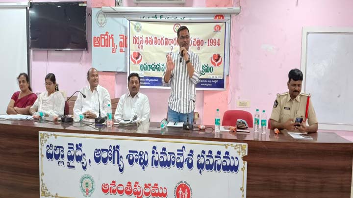 విశాలాంధ్ర -అనంతపురం : టౌన్ లింగ నిర్ధారణ నిషేధి చట్టం అమలులో స్వర్ణ వార్డుల్లో పనిచేస్తున్న మహిళా సంక్షేమ సిబ్బంది, మహిళా పోలీసులు భాగస్వాములు కావాలని జిల్లా ఇంచార్జ్ వైద్య ఆరోగ్యశాఖ అధికారి డాక్టర్ శ్రీనివాస్ రెడ్డి పేర్కొన్నారు. జిల్లా కలెక్టర్ ఆదేశాలతో మంగళవారం స్థానిక డీఎంహెచ్వో కార్యాలయంలోని కాన్ఫరెన్స్ హాల్లో గర్భస్థ శిశు లింగ నిర్ధారణ నిషేధ చట్టంపై మహిళా పోలీస్ లకు శిక్షణా కార్యక్రమాన్ని ఆయన ప్రారంభించారు. ఈ సందర్భంగా ఆయన మాట్లాడుతూ… రోజురోజుకు తగ్గిపోతున్న లింగ నిష్పత్తి ఆందోళన కలిగిస్తుందన్నారు. ఆడ కూతురు ప్రాముఖ్యత, లింగ వివక్ష నివారణ పై సమాజానికి తెలియ చెప్పాల్సిన బాధ్యత మహిళా పోలీసులు కూడా తీసుకోవాలన్నారు. పబ్లిక్ ప్రాసిక్యూటర్ సుబ్బలక్ష్మి మాట్లాడుతూ… మహిళా జాతిని రక్షించుకునేందుకు లింగ నిర్ధారణ నిషేధ చట్టం పకడ్బందీగా అమలు చేయాల్సిన బాధ్యత తీసుకోవాలన్నారు. ప్రజల మధ్యన పనిచేస్తున్న మహిళా పోలీసులు చట్ట అమలుకు సరైన వారదులని చెప్పారు. జిల్లా మాస్ మీడియా అధికారి ఈ .నాగరాజు శిక్షణ ఇస్తూ చట్టాన్ని విపులంగా వివరించి అమలకు సహకరించాలని కోరారు. ఈ కార్యక్రమంలో డిప్యూటీ మాస్ మీడియా అధికారి లక్ష్మీనారాయణ, దిశా పోలీస్ ఇన్స్పెక్టర్ వెంకటేశ్వర్లు, న్యాయ సలహాదారులు ఆషారాణి, సంధ్యారాణి, ఆరోగ్య విద్యాధికారులు వేణుగోపాల్, వెంకటేశ్వరరావు, కిరణ్, డెమో, అనంతపురం నగరానికి చెందిన స్వర్ణ సచివాలయంలో పనిచేస్తున్న మహిళా పోలీసులు, సిబ్బంది పాల్గొన్నారు.